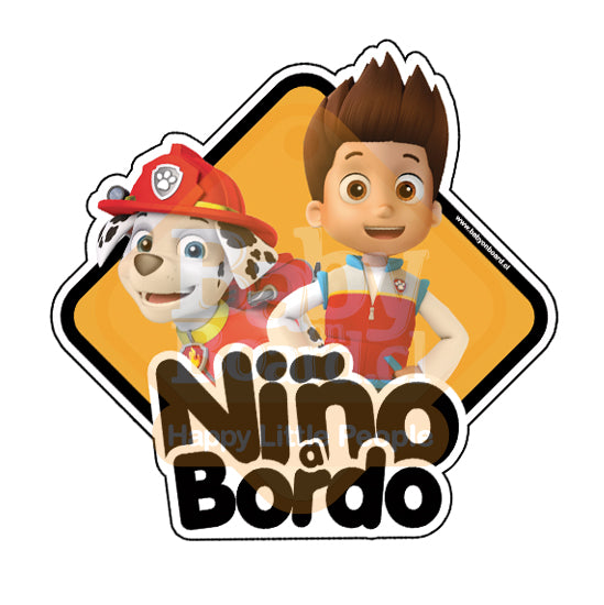 ¡Al rescate con Paw Patrol! Letrero 'bebé a bordo' con Ryder y Marshall acompañando a tu pequeño en cada paseo. Perfecto para fans de la patrulla más bacán, con un diseño tierno y entretenido